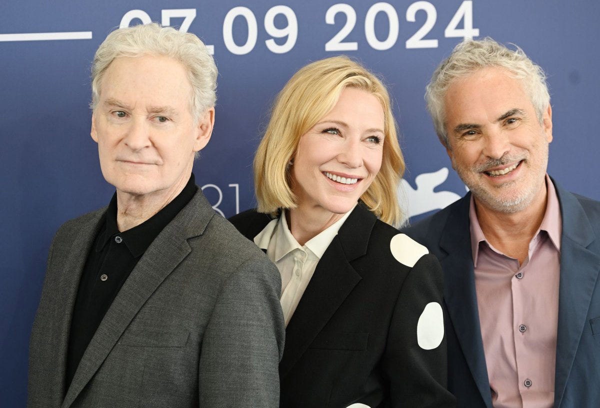 That was followed by Alfonso Cuarón’s erotic thriller miniseries Disclaimer, starring Kevin Kline—now 76 years old, what?—Cate Blanchett (55) and Sacha Baron Cohen (52), and Wolfs, Jon Watts’ zany buddy film about professional fixers, with real-life pals Brad Pitt (60) and George Clooney (63).